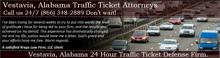 Call Kreps Law Firm, LLC if you were charged with speeding, reckless driving, running a red light or stop sign, or speeding 25 over in Vestavia, Alabama. Let our knowledgeable and experienced attorneys fight your traffic charge. Traffic charges add points to your driver's license, but you don't have to let this happen to you. Call Kreps TODAY at (866) 348-2889 or CLICK HERE so we can inform you of your rights, answer your questions, and discuss your options.